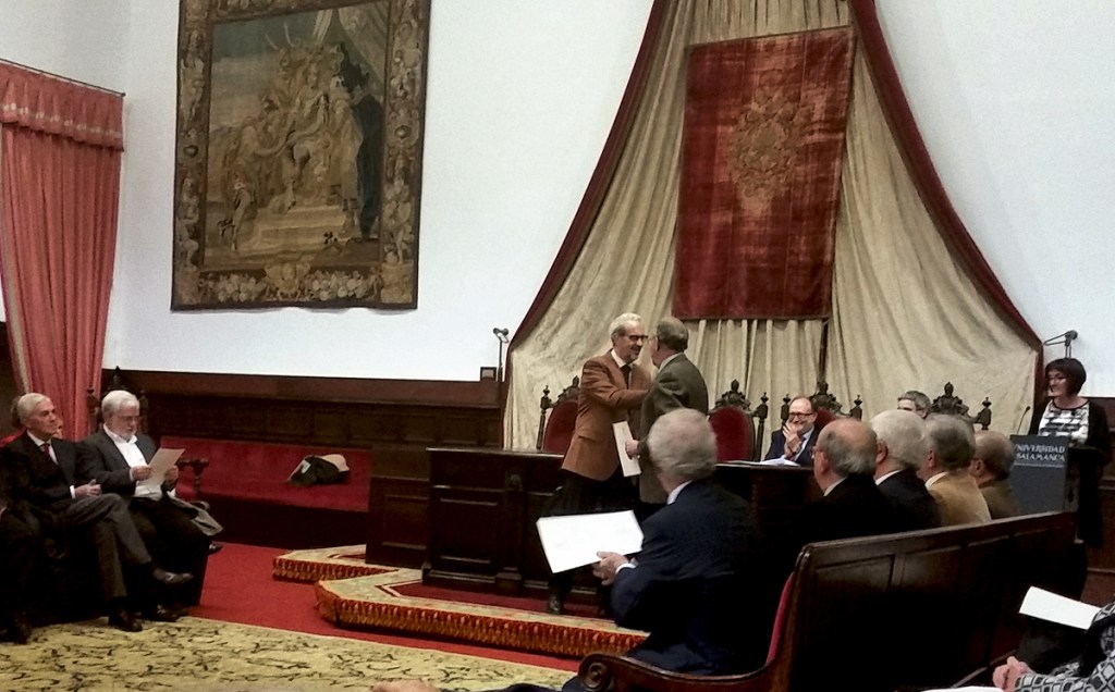 El pasado jueves, 19 de noviembre, en el Paraninfo de la Universidad, se celebró el acto de reconocimiento y gratitud a los profesores que accedieron a la jubilación durante el curso 2014-2015. Entre ellos está nuestro compañero, el Prof. Dr. D. Enrique Battaner Arias, a quien, desde esta líneas, deseo agradecer, en nombre del Departamento que dirijo y en el mío propio, sus años de dedicación a la Universidad, al Departamento y, sobre todo, a una docencia de la Bioquímica, en la Facultad de Medicina, de altísima calidad, difícilmente alcanzable por los que le seguimos en las labores docentes.
